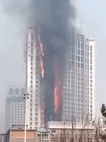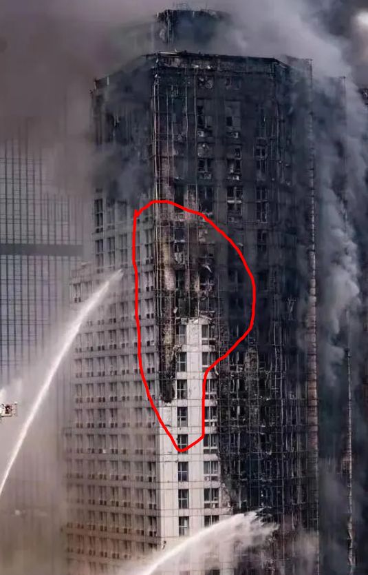 向下燃烧的外墙 外墙保温板一般都是向上烧,但有时也会向下烧,可能也会影响逃生。 有非常明显的向下燃烧痕迹。至少三层楼。 原因机理未知,肯定不是相对缓慢的滴落物,更接近爆燃的现象。 先一步了解阻燃技术信息、同行交流,扫一扫关注微信公众号!