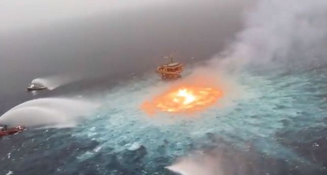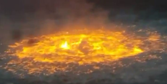 即使在水面上,也有足够的甲烷流来保持火焰燃烧。最终用氮气灭火。
