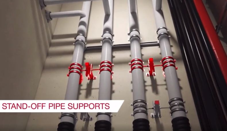 进入多层建筑后的管道在垂直方向上也要固定好,楼顶等户外情况还要防水防腐设计。
